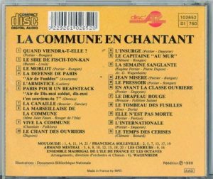 Mymytchell : Si tu me permets, je voudrais t’en présenter une dernière, qui est moins « située ». On l’a appelée « La Marseillaise des Communards ». Elle reprend l’air de la Marseillaise de 89, une autre référence des Communards.