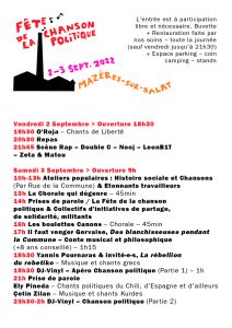 FÊTE DE LA CHANSON POLITIQUE – 2 et 3 Septembre 2022 – 1ère édition